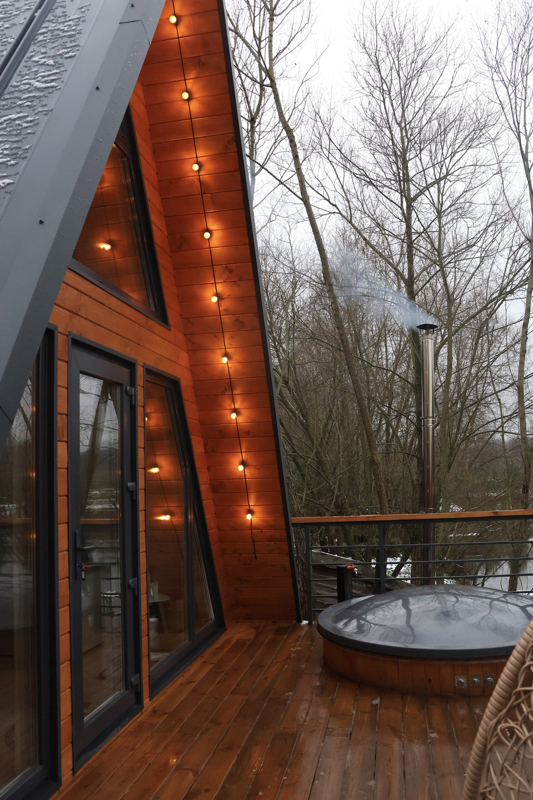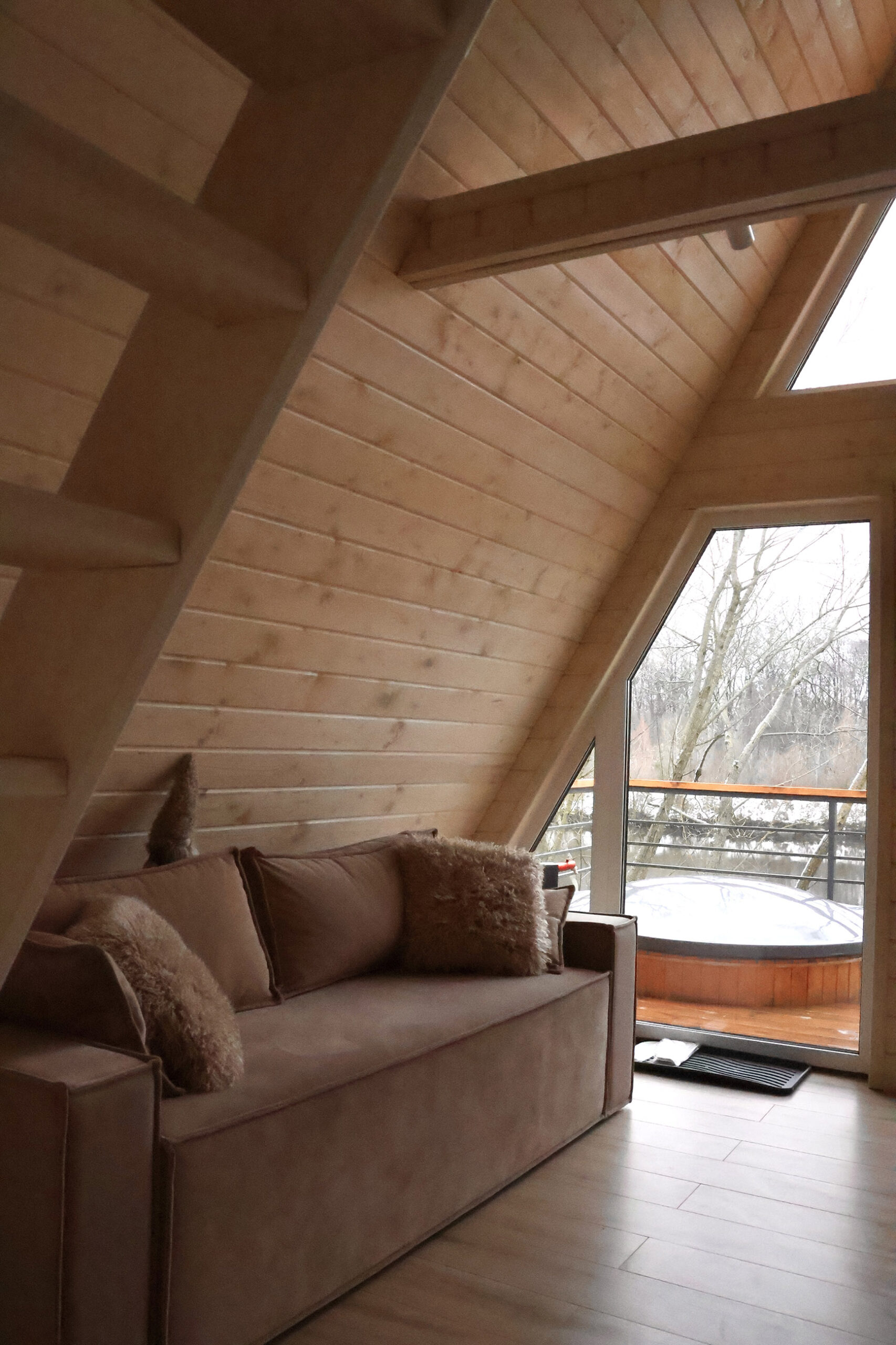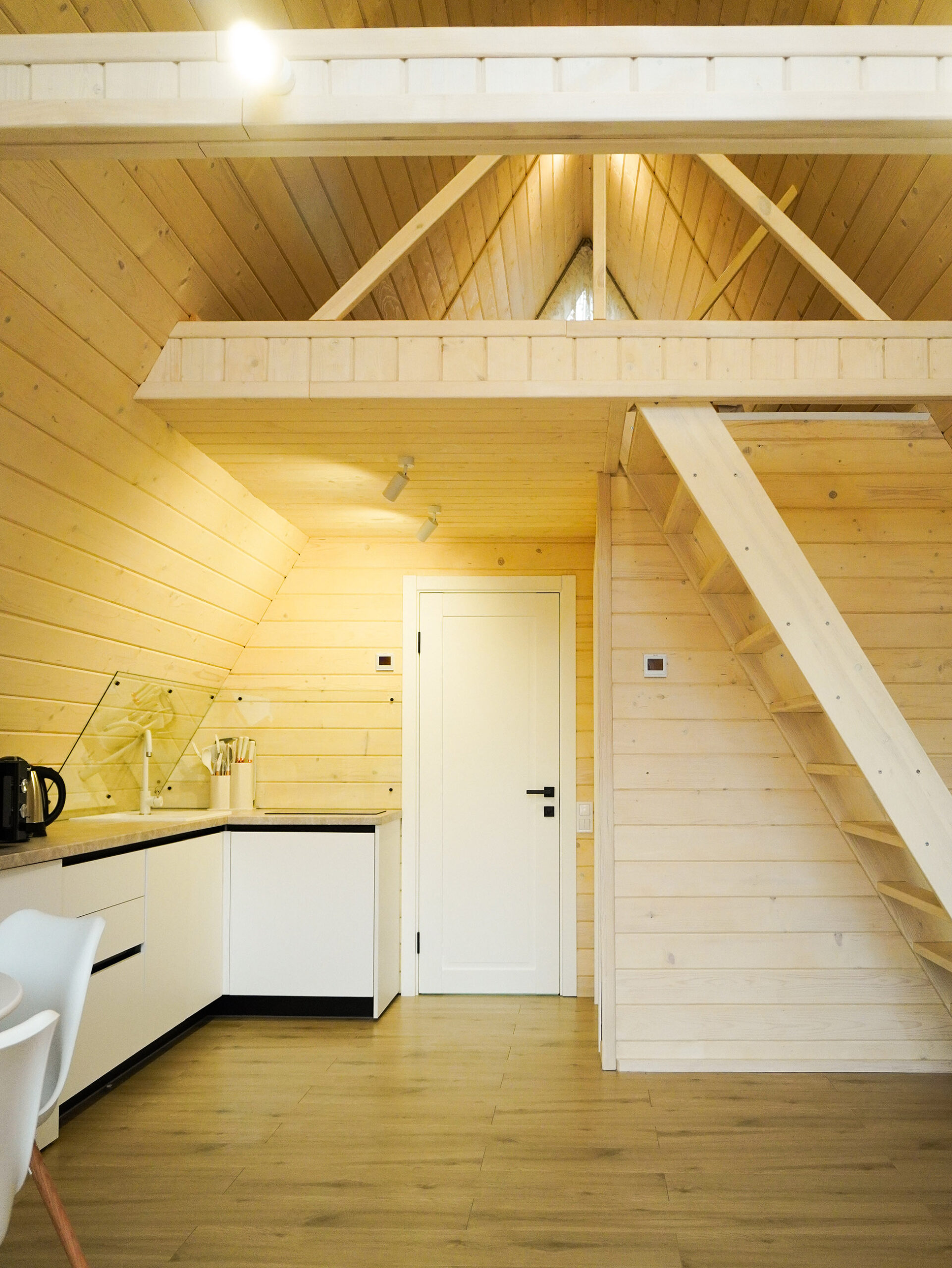 Двоповерховий будиночок з двома спальнями та вітальнею в спокійних, приємних тонах, щоб нічого не відволікало вас від спілкування з друзями, чи родиною. Будинок має літню терасу з садовими меблями, де ви зможете провести час на свіжому повітрі, власний вихід до озера забезпечить вам відмінну риболовлю та романтичні вечора на воді в затишній альтанці на пірсі.