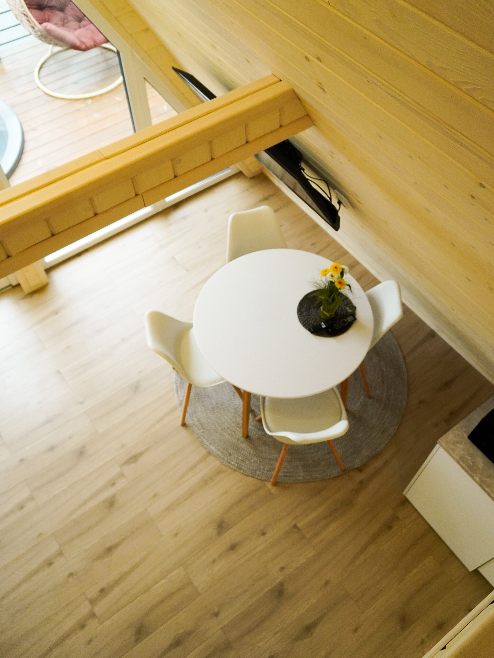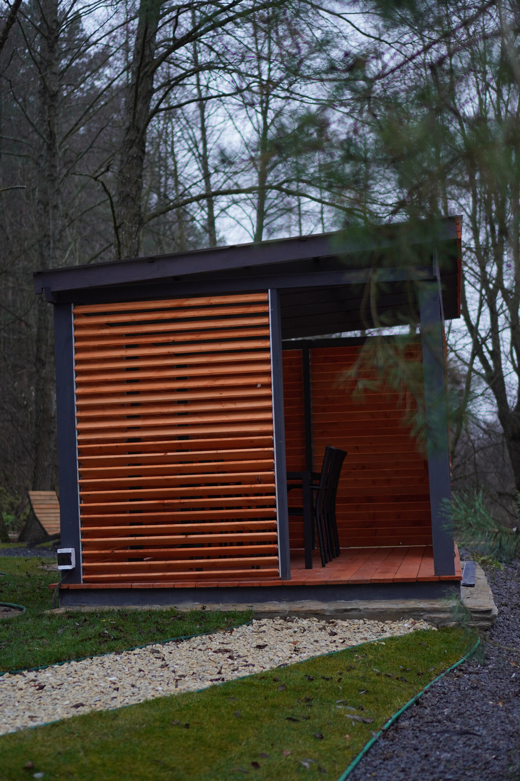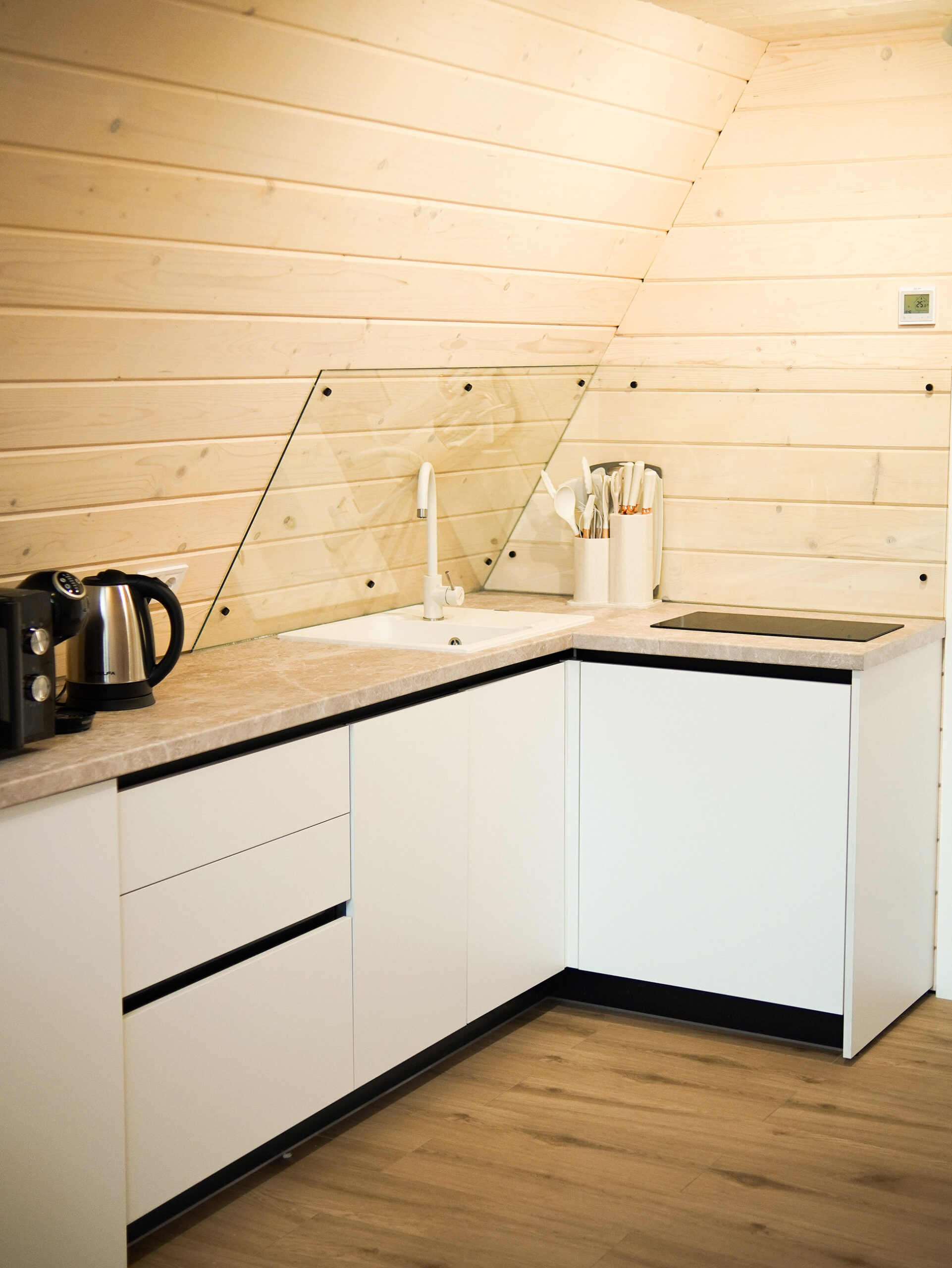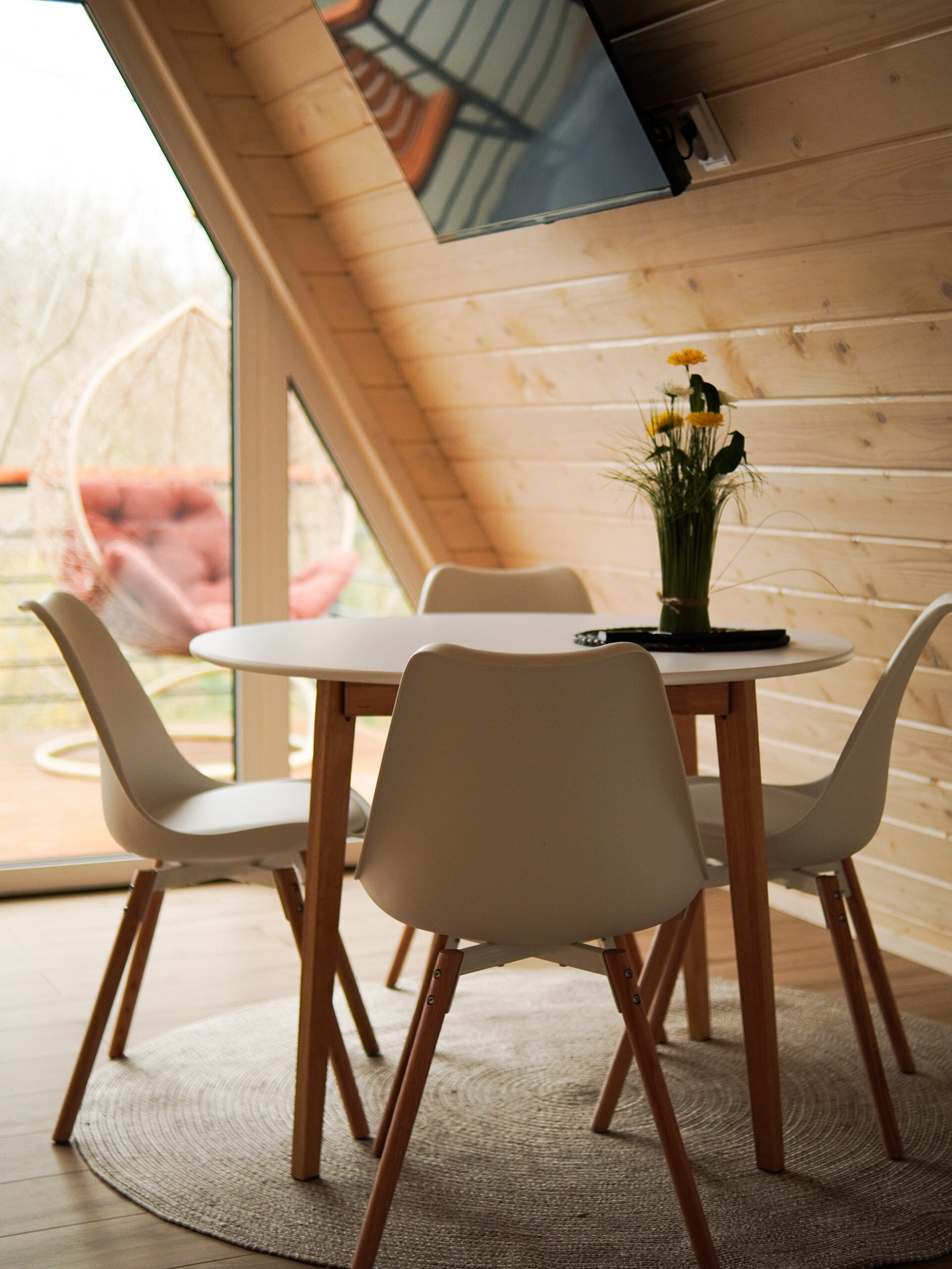 Двоповерховий будиночок з двома спальнями та вітальнею в спокійних, приємних тонах, щоб нічого не відволікало вас від спілкування з друзями, чи родиною. Будинок має літню терасу з садовими меблями, де ви зможете провести час на свіжому повітрі, власний вихід до озера забезпечить вам відмінну риболовлю та романтичні вечора на воді в затишній альтанці на пірсі.